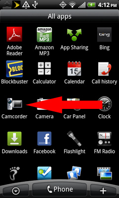 First you'll need to locate the camcorder application on your home screen.