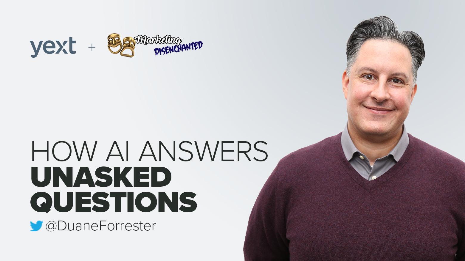 Yext's VP of Industry Insights, Duane Forrester, recently discussed the rise of artificial intelligence, SEO, and more on the Marketing Disenchanted Podcast.