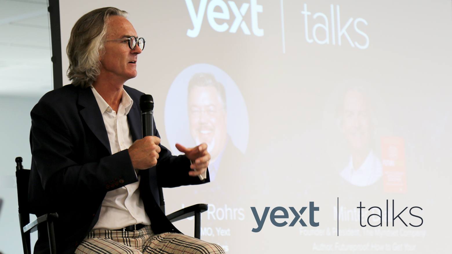 Last week we had the pleasure of hosting Founder/President, Minter Dial, of the Myndset Company for a YextTalks. In a session led by Yext CMO, Jeffrey K. Rohrs, Dial provided a whirlwind tour of new global technology trends and how they are changing lives, cities, societies, and enterprises.