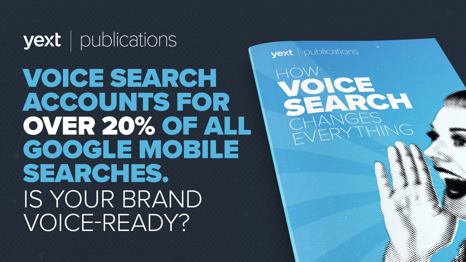 In our latest eBook, How Voice Search Changes Everything, Yext VP of Industry Insights, Duane Forrester, breaks down the world of voice search. Download it today for even more insight into how it impacts your business, the customer journey, and much more.