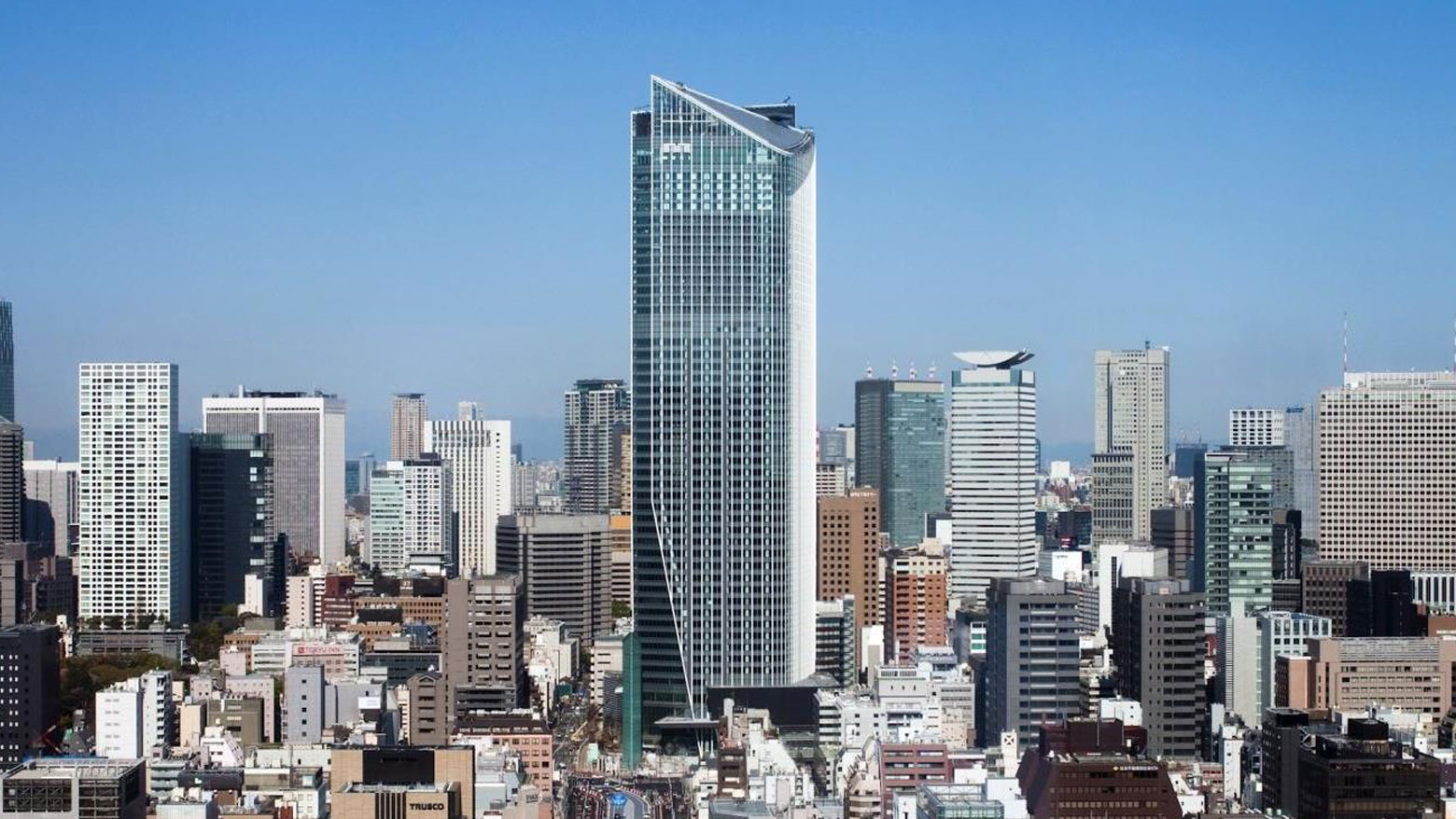 The building's top floor features the luxury Andaz hotel, with panoramic views of Tokyo from above.