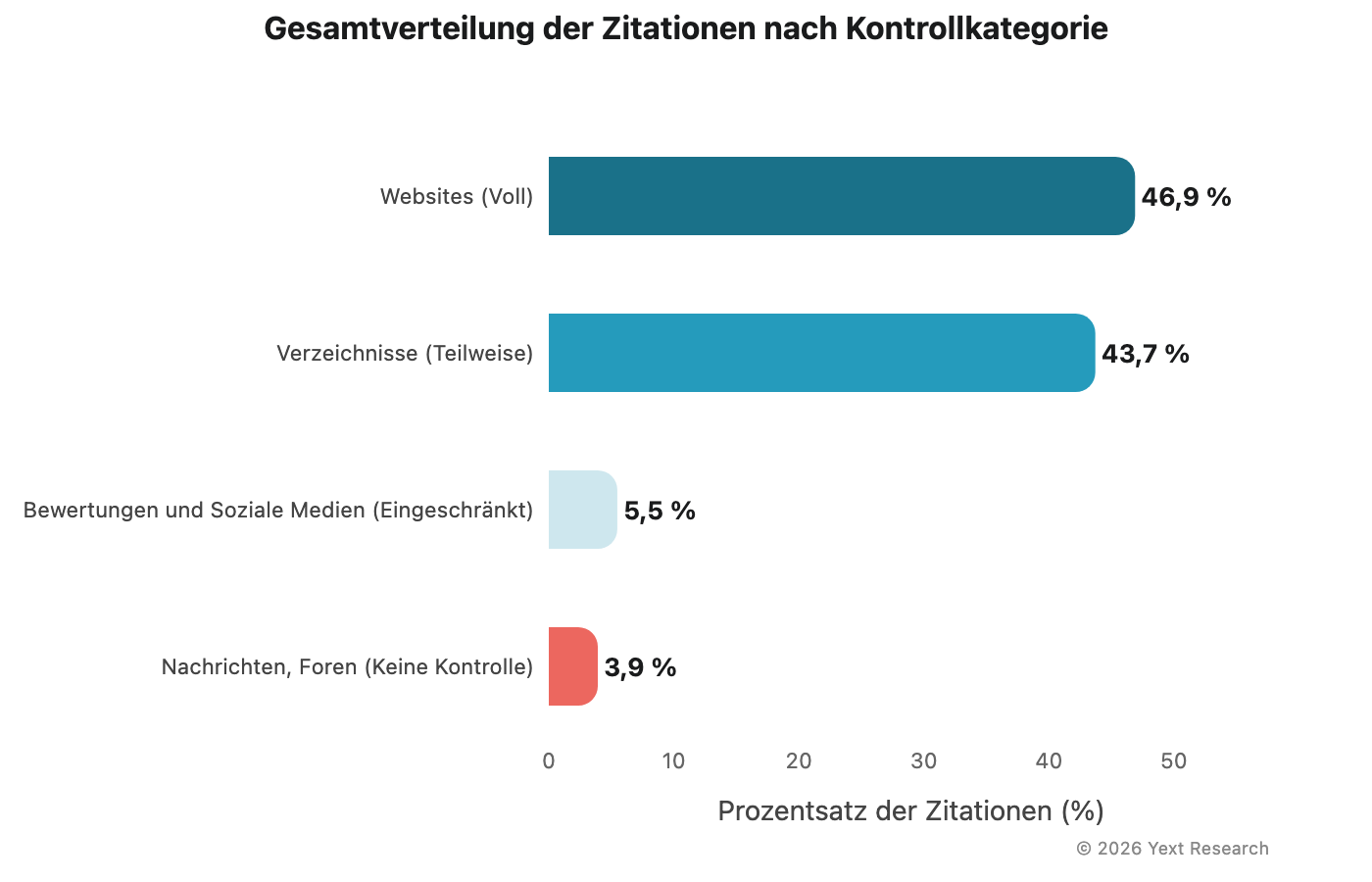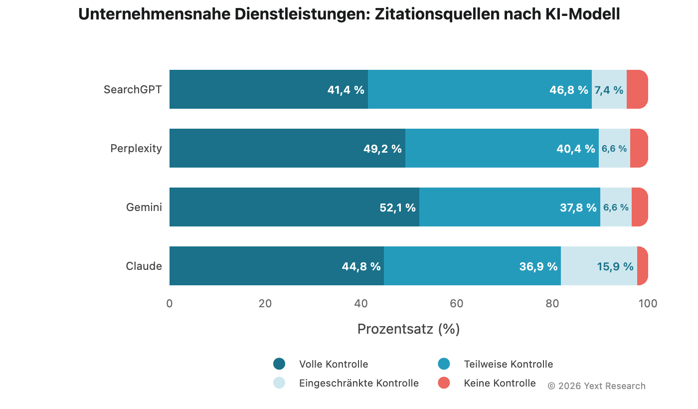 Bei gemeinnützigen Organisationen liegt der Wert für „Keine Kontrolle“ bei bemerkenswerten 25,62 %. Für diese Organisationen wird die Sichtbarkeit in der KI-Suche maßgeblich dadurch bestimmt, was andere über sie schreiben.