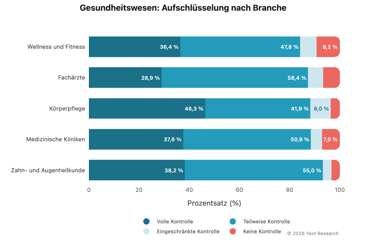 „Fachärzt*innen“ weisen den höchsten Wert bei „Teilweise Kontrolle“ (58,39 %) auf, was die zentrale Bedeutung von Gesundheitsverzeichnissen für die Entdeckung von Fachärzt*innen unterstreicht.