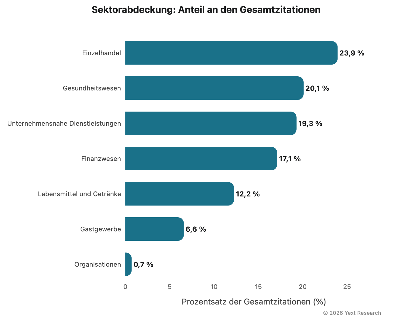 Zitierungsmuster variieren stärker innerhalb der Sektoren als sektorenübergreifend. „Restaurants“ und „Feinkostläden und Cafés“ gehören zum selben Sektor (Lebensmittel und Getränke), weisen jedoch deutlich unterschiedliche Zitierungsprofile auf. Rein sektorale Analysen übersehen dies oft.