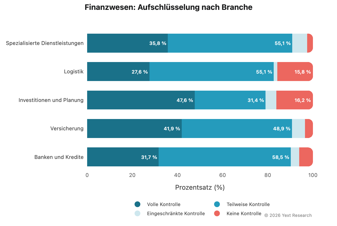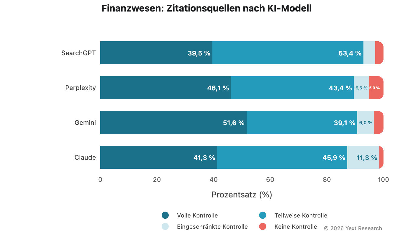 Der Finanzsektor zeigt eine starke Präferenz für „Teilweise Kontrolle“ über Modelle hinweg, angetrieben durch Finanzverzeichnisse und Vergleichsplattformen: