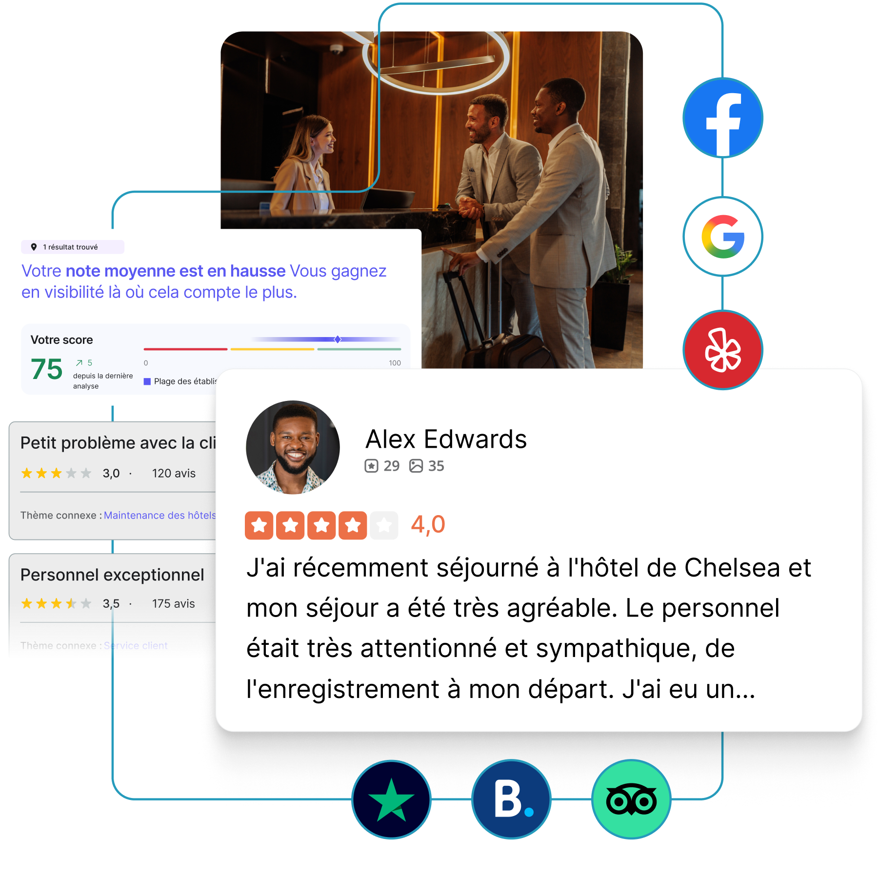 La gestion automatisée des avis, associée au plus grand réseau d'annuaires pour les listings, améliore la perception, la visibilité et la croissance.