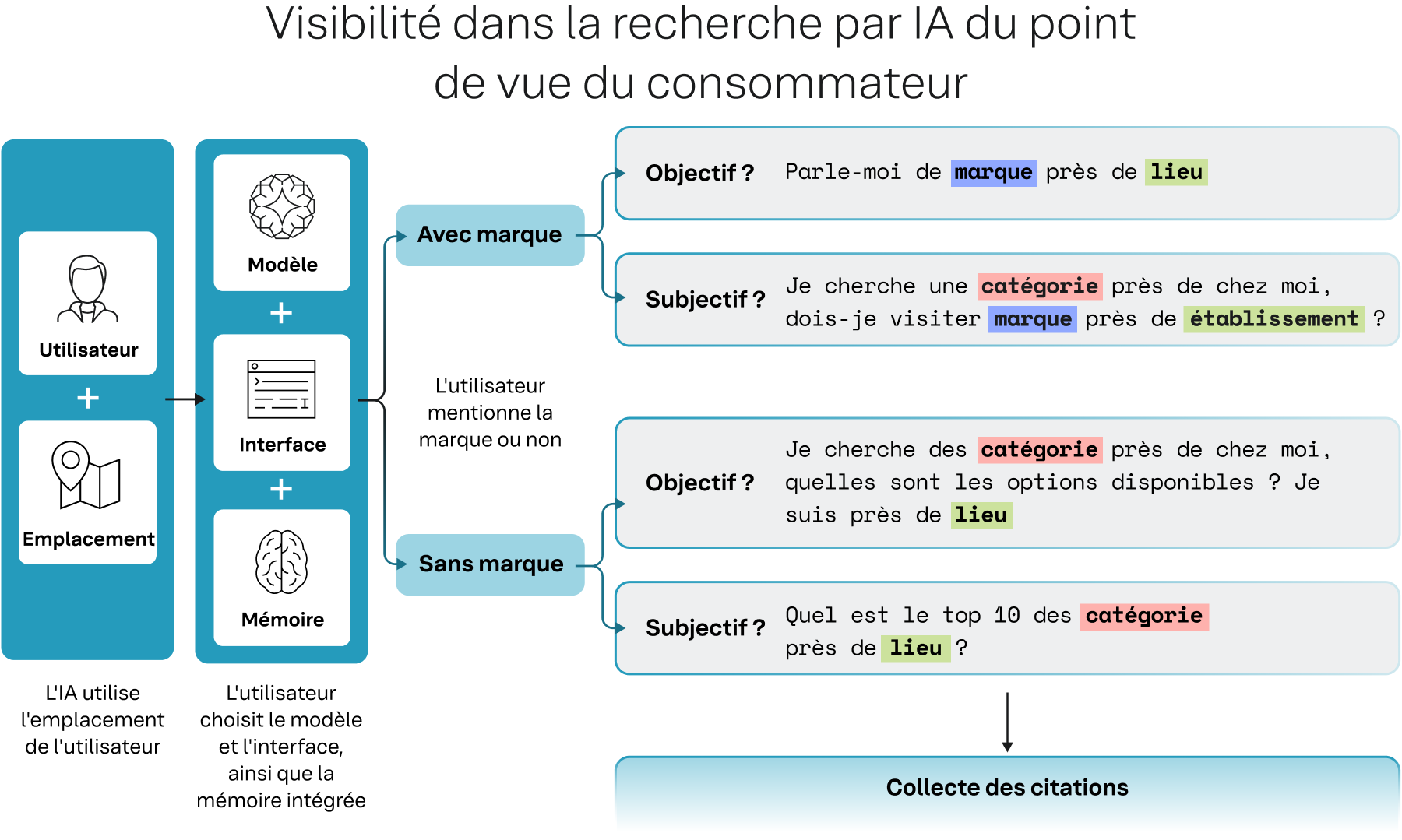 En analysant les schémas de citation à un niveau local, pour chaque consommateur, une marque peut agréger ces données pour construire une stratégie précise et opérationnelle visant à améliorer sa visibilité dans la recherche par IA. Sans cette compréhension granulaire, il est presque impossible de définir un chemin clair pour atteindre le consommateur là où il se trouve réellement.