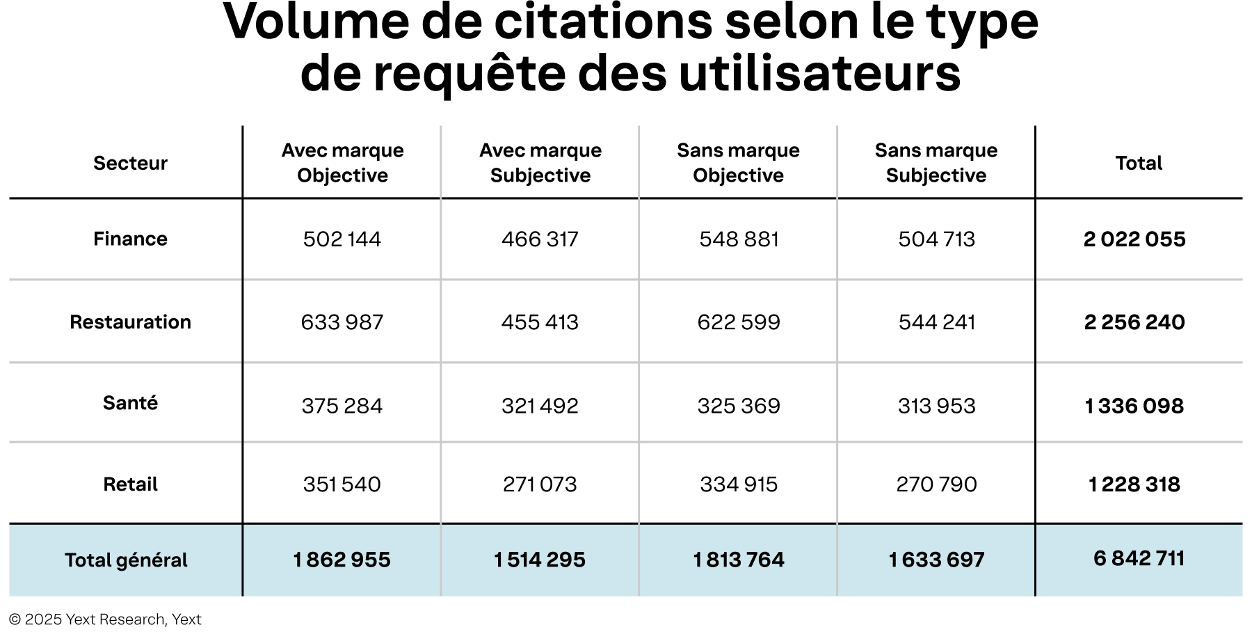 Cette recherche repose sur l'analyse de 6,8 millions de citations issues des réponses de recherche par IA, collectées entre le 1er juillet et le 31 août 2025. Les données proviennent d'une étude mondiale menée auprès de clients et prospects de Yext, utilisant la plateforme Yext Scout. Bien que les données proviennent d'un échantillon spécifique, la diversité des sources citées est considérable, couvrant une longue traîne de 20 820 domaines uniques.
