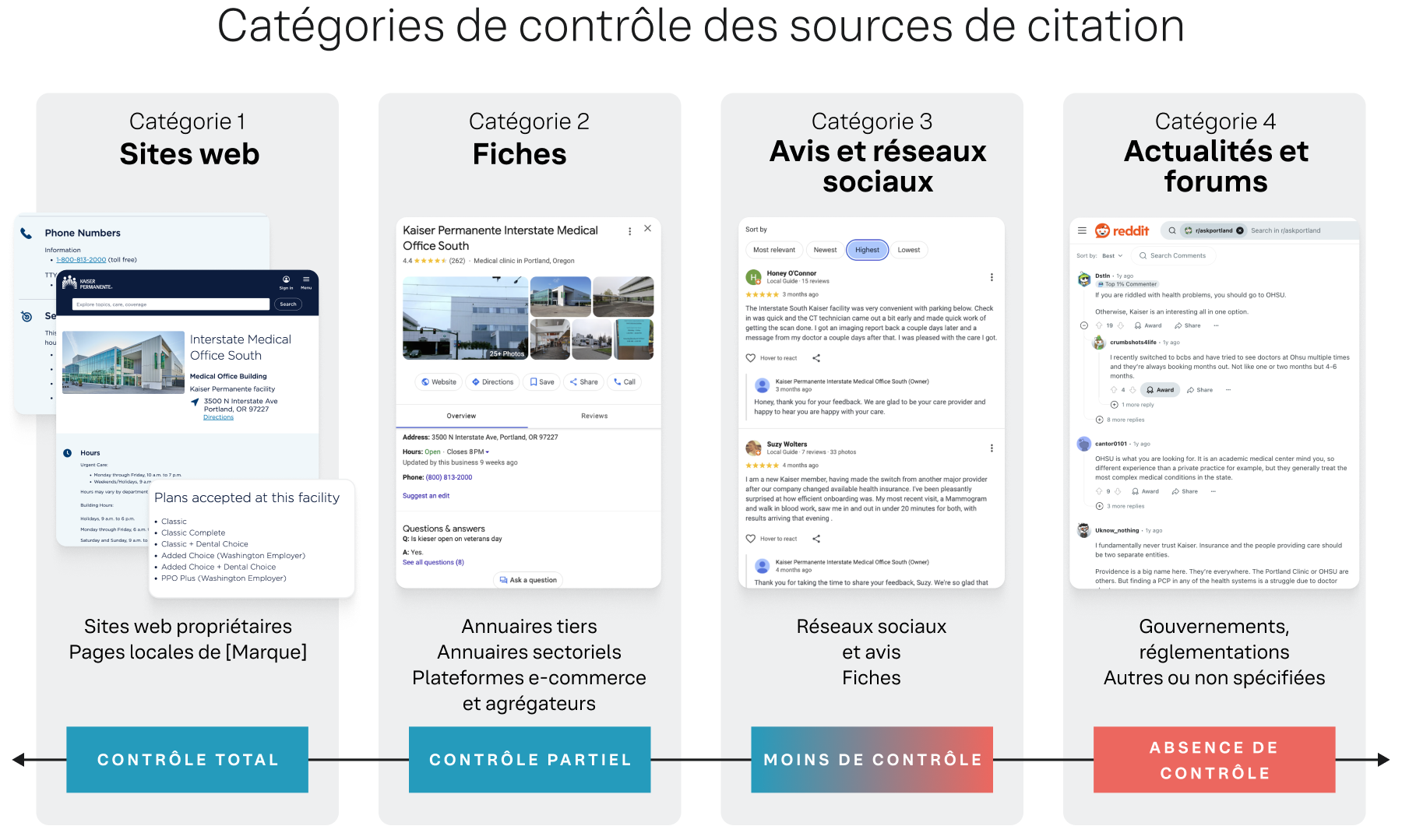 Il est nécessaire de catégoriser les sources de citation en fonction de la capacité d'une marque à contrôler les informations qu'elles contiennent. Le cadre de contrôle classe ces sources en quatre catégories distinctes, allant des sources totalement détenues par la marque à celles où elle n'a aucune influence directe. Cette classification stratégique permet à la marque de hiérarchiser ses efforts et de concentrer ses ressources là où elles auront le plus d'impact.