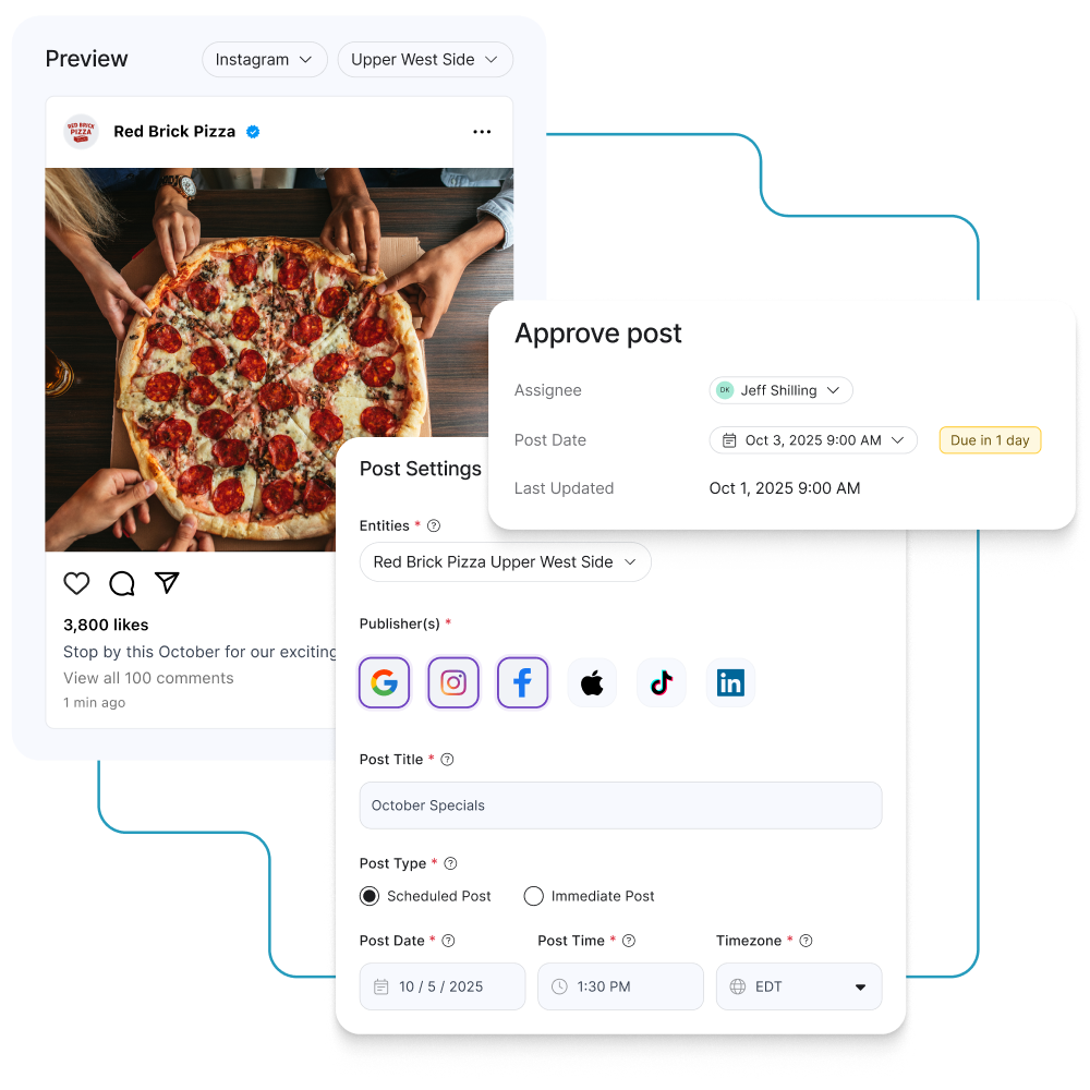 Yext Social makes it simple to launch national campaigns and localize them for every community. Corporate teams can publish brand-approved content, while franchisees add local details that make posts resonate. This balance of central control and local flexibility ensures campaigns stay on brand while driving stronger engagement across hundreds of restaurants.