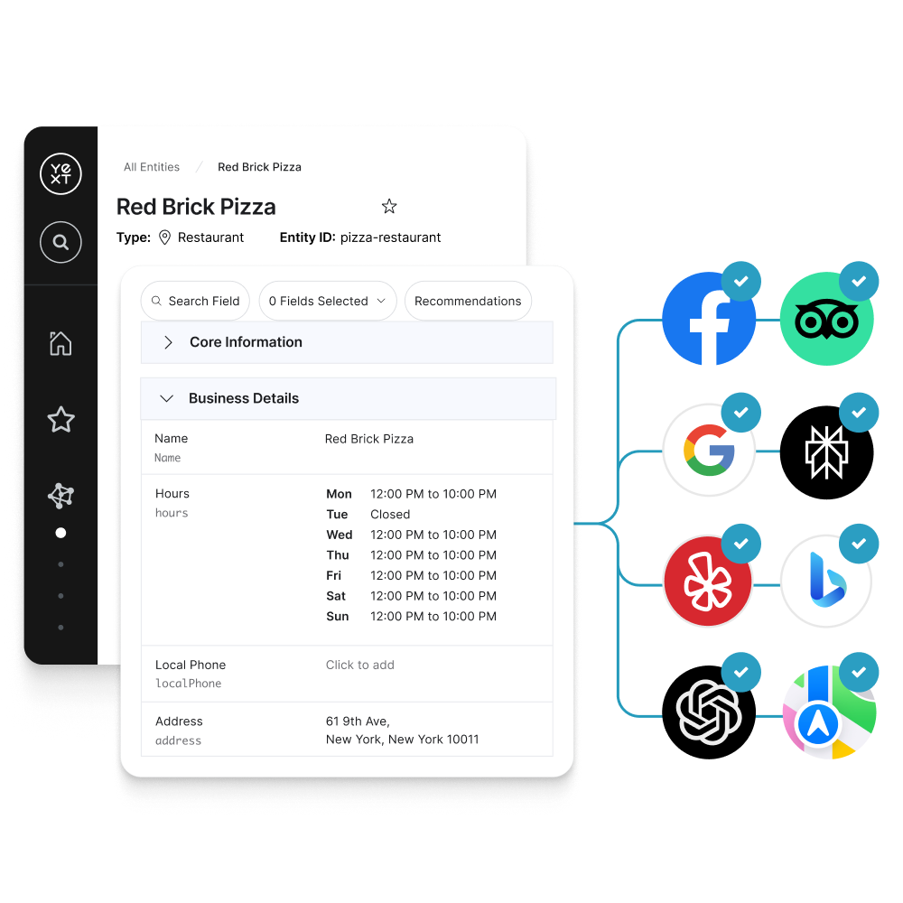 Stand out across Google Maps, Yelp, Facebook, and Uber Eats. With 200+ direct publisher connections, Yext turns discovery into visits and orders.
