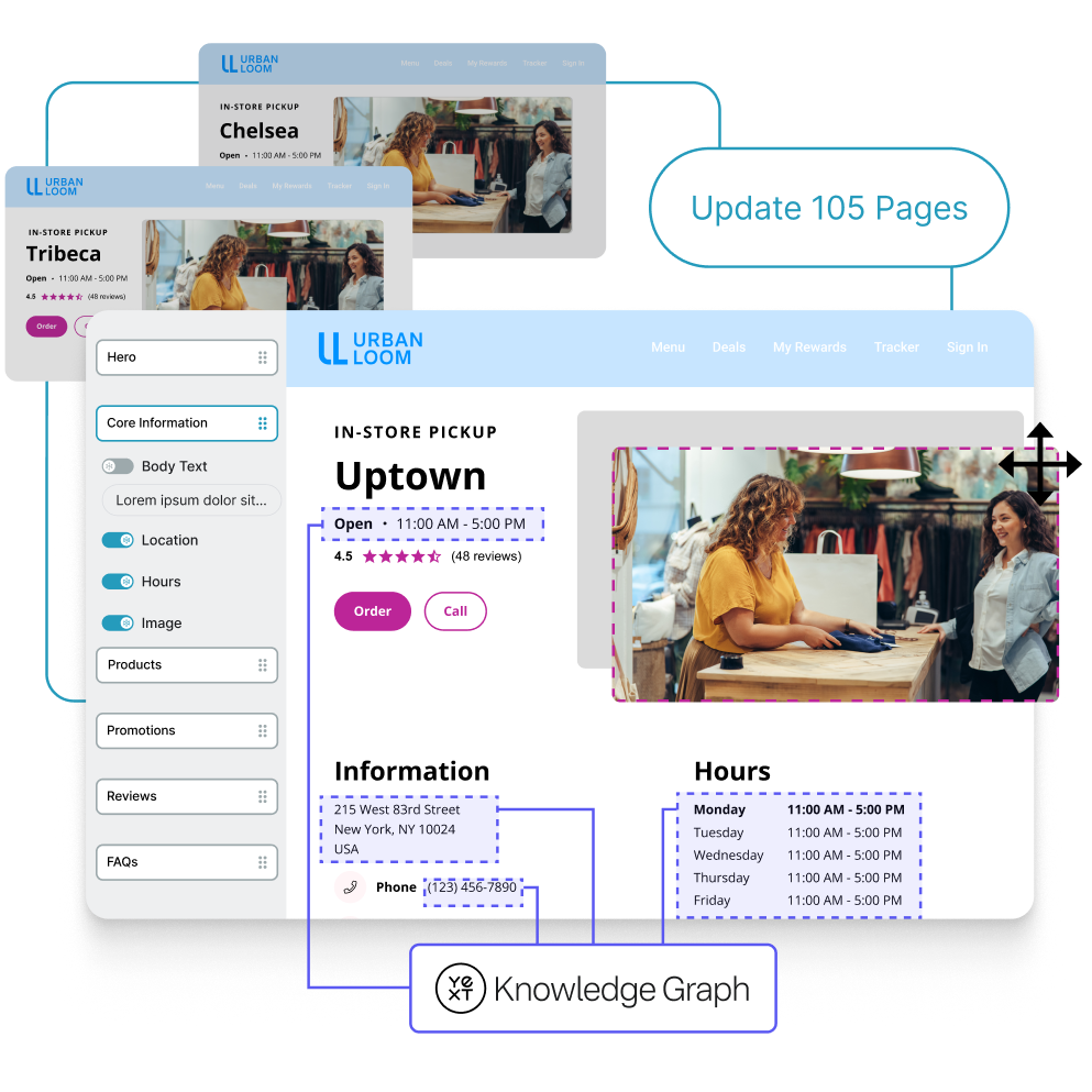 Yext helps retailers manage multiple locations by unifying all brand data, insights, and engagement tools in one platform. Scout shows where visibility or sentiment is lagging, while Knowledge Graph centralizes store, product, and promotion details in AI-ready formats. Listings, Reviews, Pages, Social, and Search then execute updates instantly — ensuring every store is visible, trusted, and converting more shoppers.