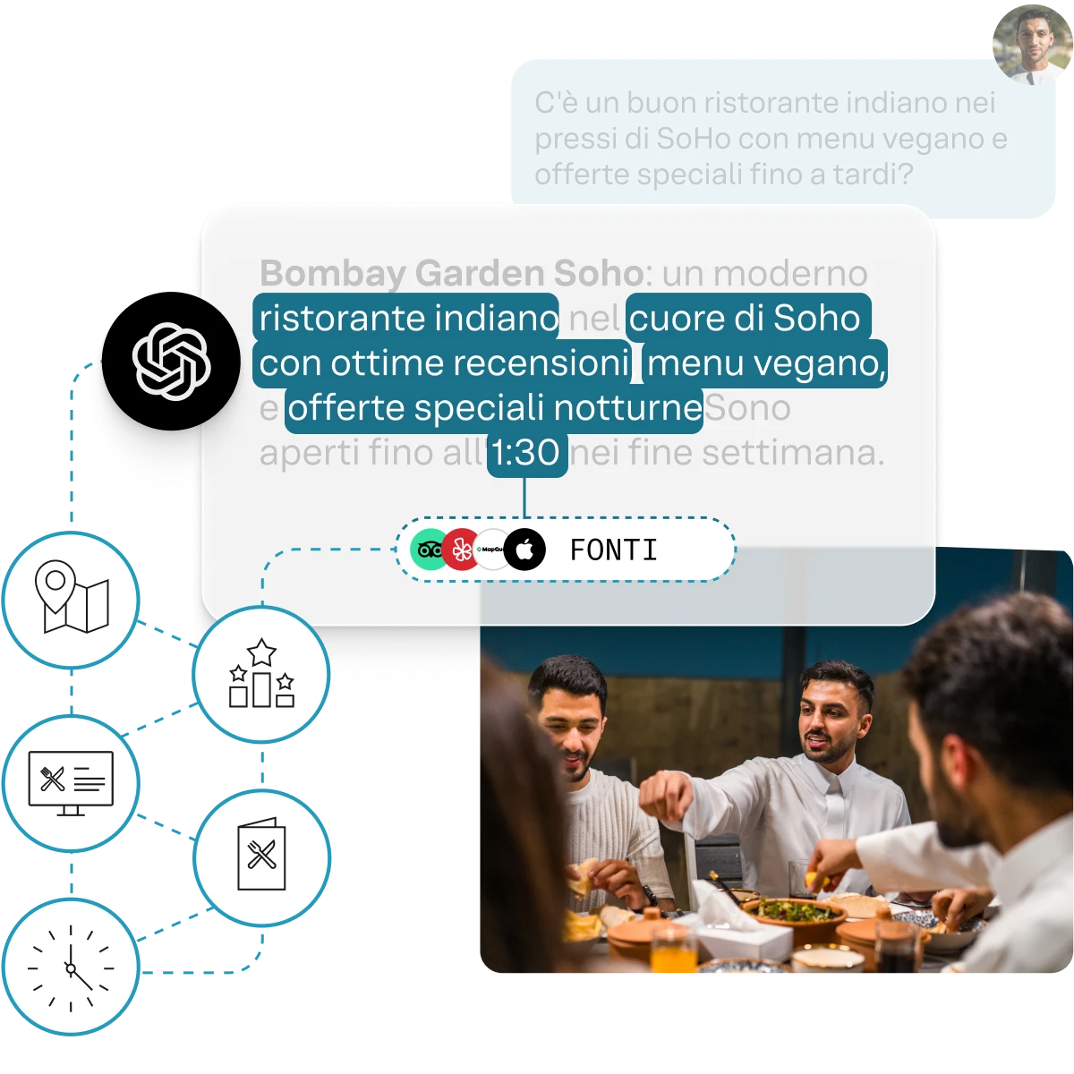 Fornisci risposte strutturate e affidabili direttamente ai motori di IA come ChatGPT e a tutte le fonti da cui attingono. Con dati predisposti per l'IA, i modelli linguistici di grandi dimensioni (LLM) possono analizzare, elaborare e rappresentare in modo affidabile la tua attività, assicurando che il tuo brand si presenti con risposte accurate ovunque vengano generati i risultati.