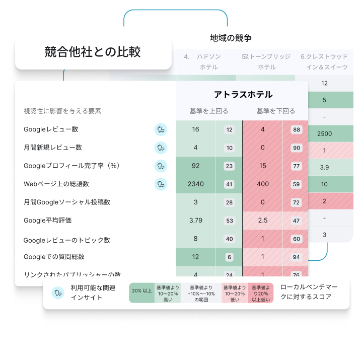 従来の検索とAI検索において、地域の競合他社と比較してどのように位置づけられているかを確認し、次に何をすべきかを正確に把握しましょう。