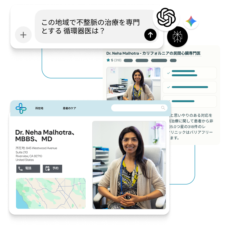 AIに最適化されたローカルページを拡張して、意図の高いローカル検索で見つけてもらい、より多くのトラフィックに変換しましょう。