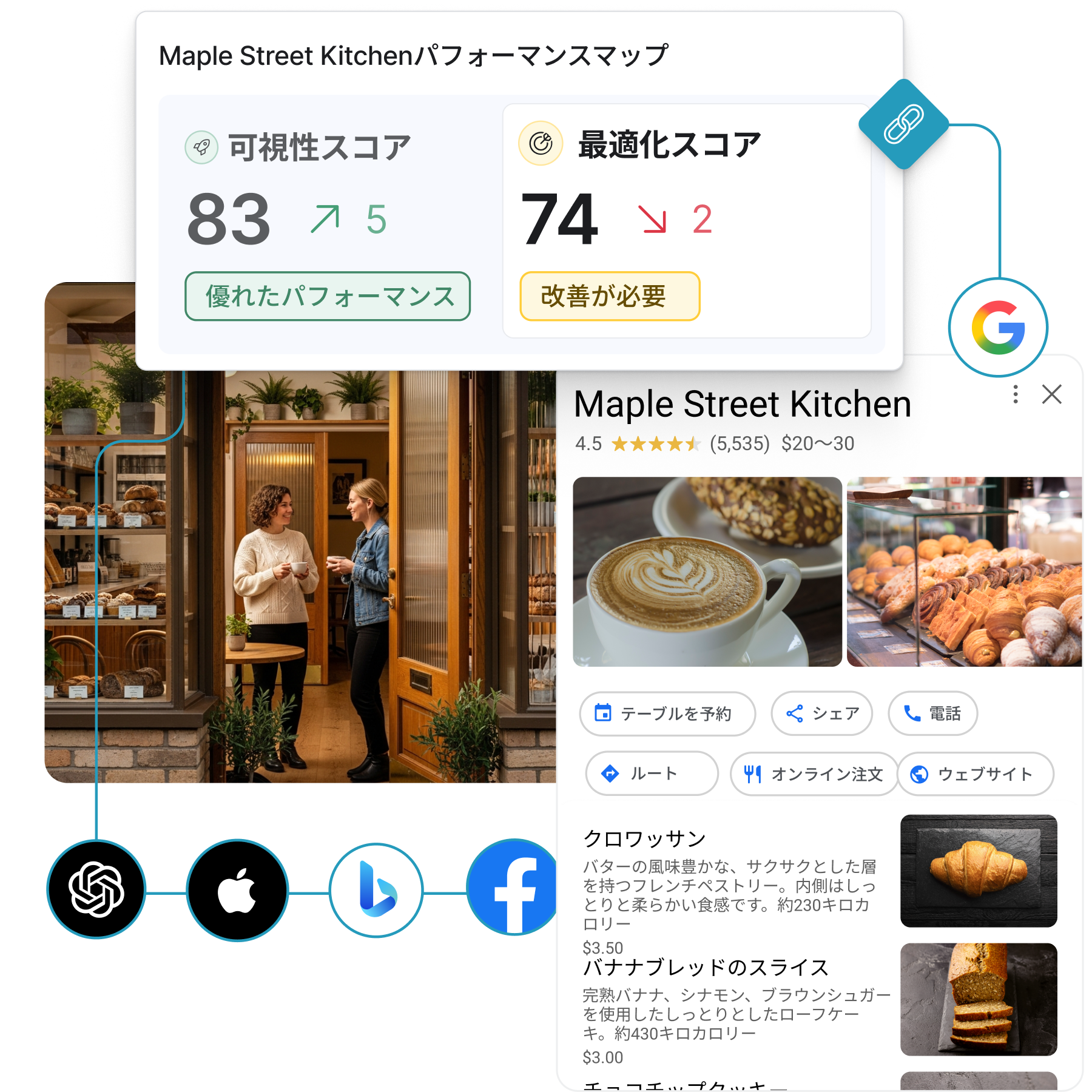 ビジネス情報を200社を超えるパブリッシャー間でリアルタイムに一貫性・正確性・AI 対応を保ち、ローカルブランドの可視性を最大化します。