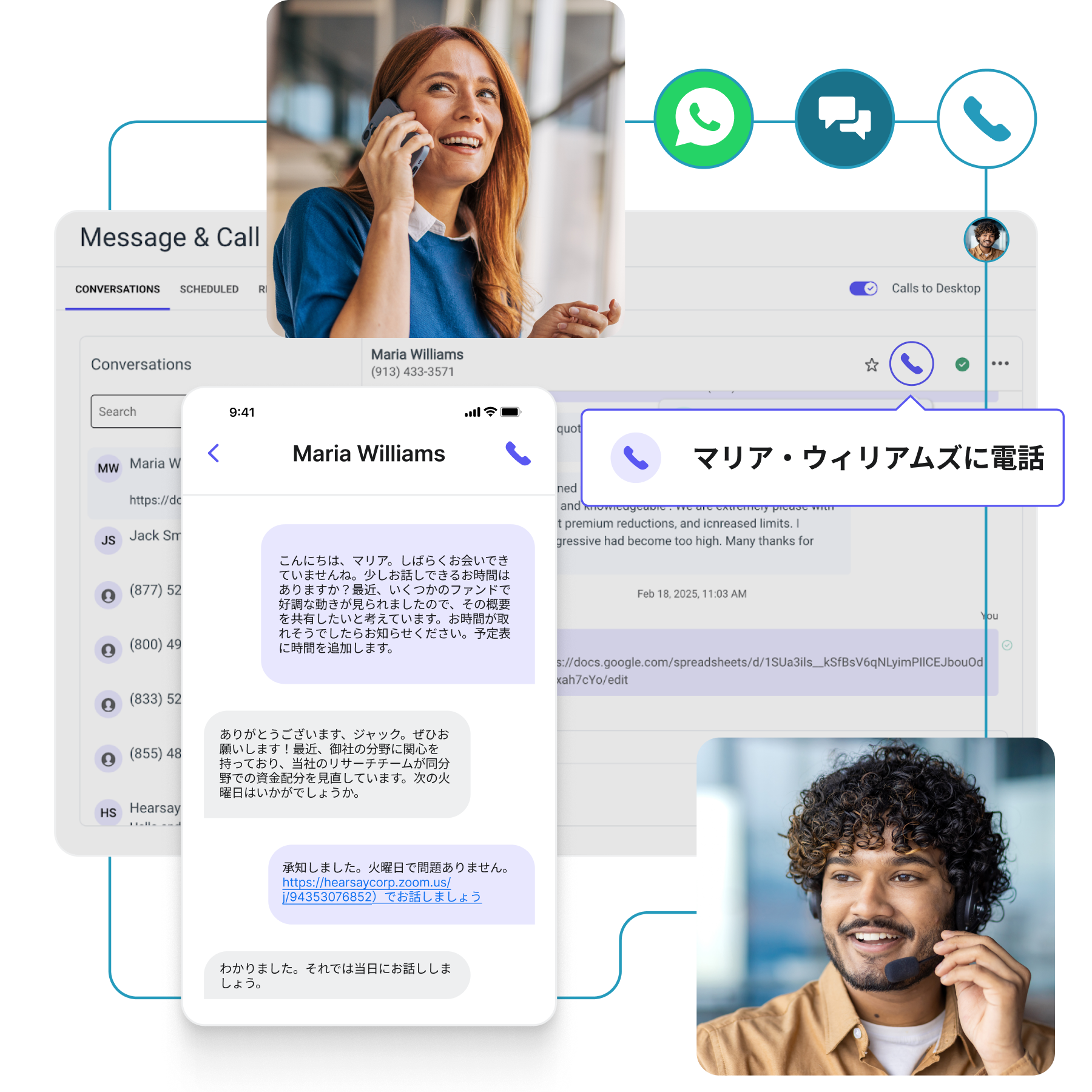 テキスト、音声、WhatsAppでの会話を単一のプラットフォームで管理できます。