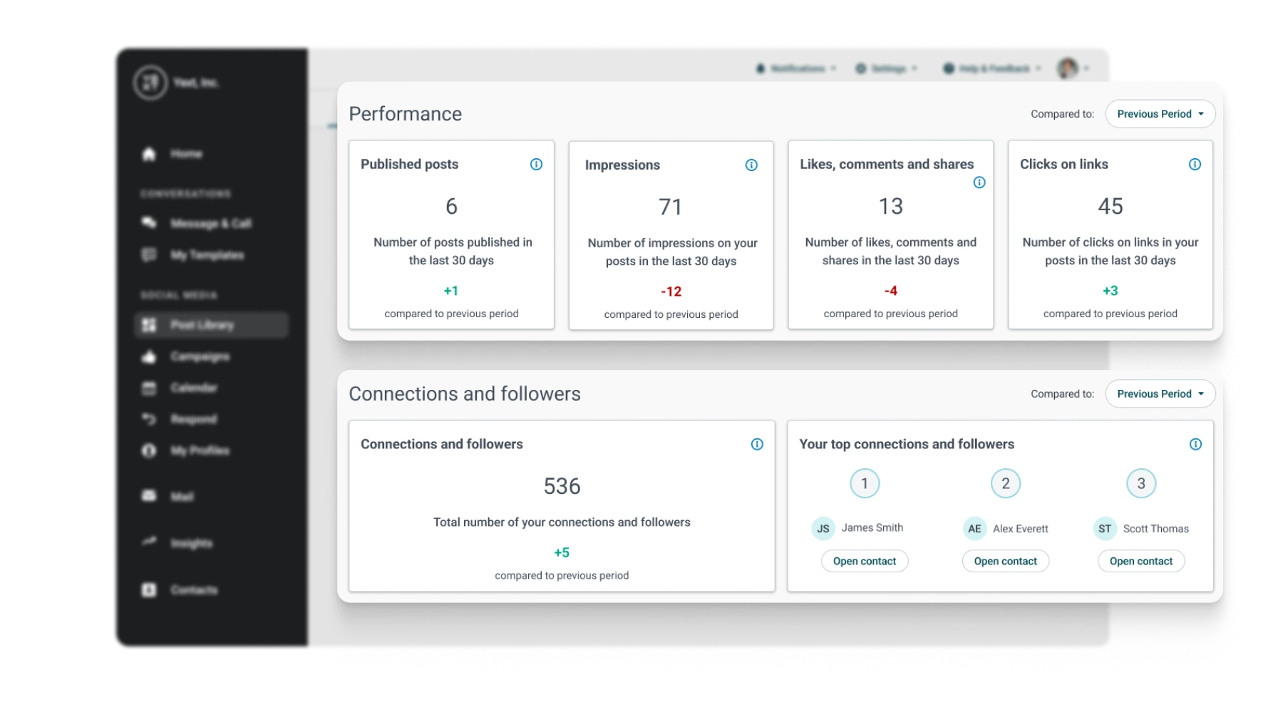 Minimize risk with supervision, profile management, configurable workflows, and keyword flagging, so you can execute at scale and teams can post with confidence.