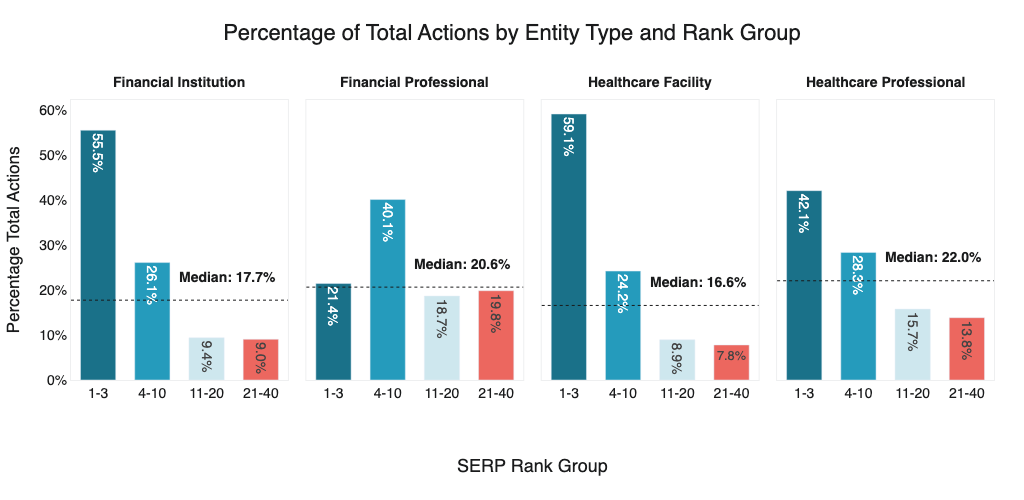 Figure 2 - Financial Professionals ranking 4th-10th outperformed the local pack significantly, accounting for more than double the total share of actions.